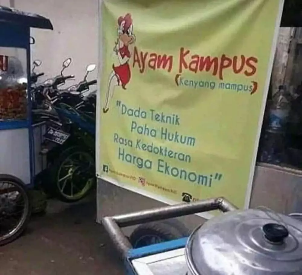 Oleh karena itu, biasanya yang membedakan warung yang satu dan yang lain adalah rasa. Selain itu, tentu dengan promosi dan nama warungnya. Tapi lucunya banyak penjual yang menggunakan nama dagangan ayamnya dengan kocak, penasaran seperti apa? Yuk simak langsung saja.