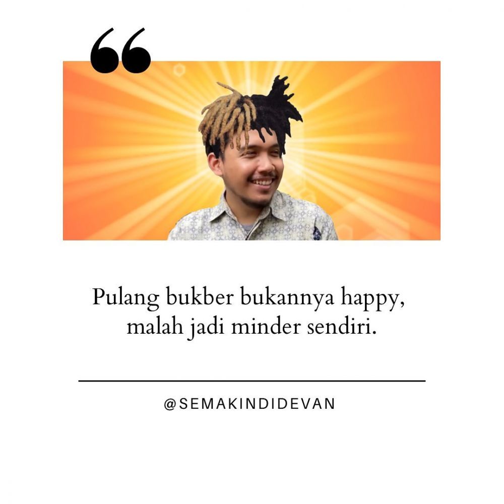 Demotivasi timbul karena sudah banyak orang-orang yang gerah sama motivasi. Banyak motivasi sendiri gak sejalan dengan kehidupan. Demotivasi muncul menyadarkan orang-orang tidak berekspektasi tinggi. Demotivasi menjadi bahan lucu-lucuan tentang kisah hidup yang nyata. Salah satu aktor demotivasi yang tengah naik daun adalah Devan Yulio. Banyak quote demotivasinya yang saat ini digemari orang-orang. Penasaran seperti apa? Yuk cek langsung saja..