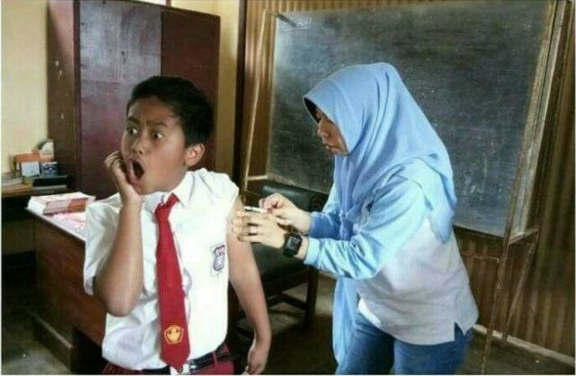 Ingat nggak kamu dan teman-temanmu dulu begitu takut melihat jarum suntik? Meski kecil, namun barang tersebut tetap menakutkan. Selain takut, momen yang pasti terkenang dalam sanubarimu adalah kekonyolan reaksi teman-temanmu yang heboh dan histeris mendapati ia mesti disuntik. Nah, untuk mengembalikan ingatanmu itu, berikut adalah 15+ reaksi kocak orang-orang ketika disuntik