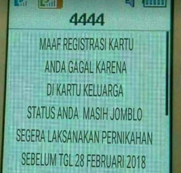 Tetapi kenyataannya pada hari pertama pemberlakuan registrasi ulang, masih banyak pengguna yang mengaku kesulitan. Bukannya mencari solusi, eh malah beberapa pengguna yang gagal registrasi ulang tersebut membuat meme-meme terkait kebijakan ini. Yuk, intip meme-meme frustrasi dan bikin ngakak berikut. (YPH/RN)