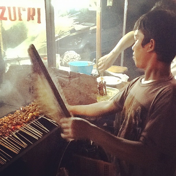 Abang jual sate apalagi, yang gerah pengunjung, yang dikipasin malah satenya. Duh.