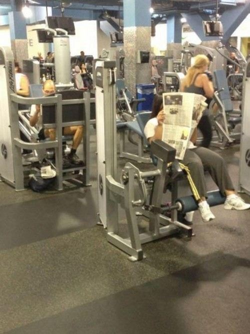 Kalau cuma baca koran doang mah ngapain susah-susah ke gym?