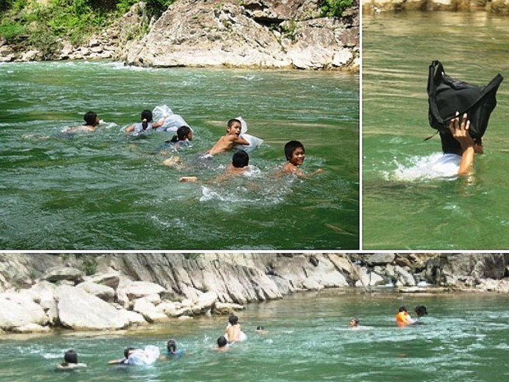 Siswa di distrik Minh Hoa Vietnam berenang di sungai sedalam 20 meter dua kali sehari untuk mencapai sekolah.