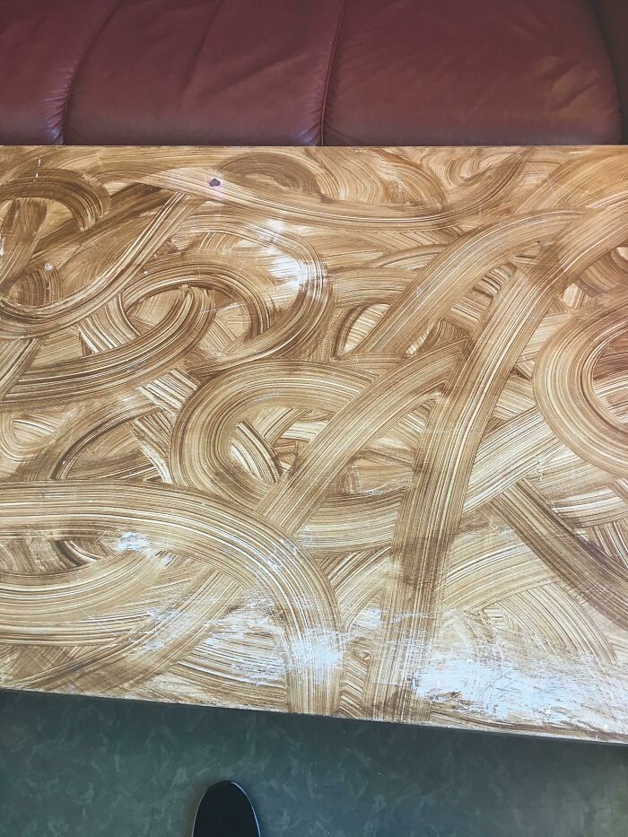 Meja ini kaya baru dikasih lumpur trus diratain.