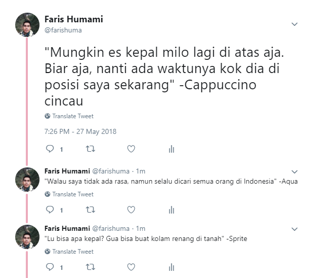 Apa jadinya kalo minuman di Indonesia berantem beradu mulut? Perseteruan minuman di dunia maya ini dirangkum oleh seorang netizen. Simak deh!