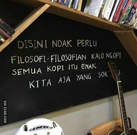 Masing-masing warung kopi memiliki konsep dan desain yang unik. Bahkan ada beberapa warung kopi yang mendesain dengan slogan atau tulisan yang bisa kita lihat. Ada slogan yang lurus-lurus saja, ada juga pemilik warung kopi yang bikin slogan unik dan kadang justru mengundang tawa. Saking uniknya, slogan ini juga kadang bikin kamu mikir keras kalau melihatnya, berikut deretannya guys..