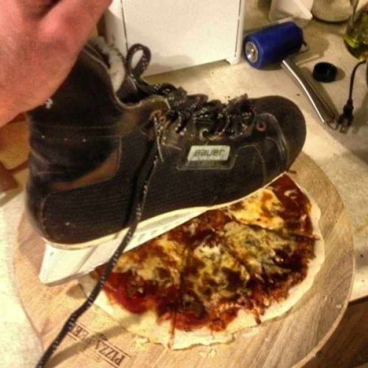 Sepatu ice skate bisa juga buat motong pizza kalau nggak ada pisau.