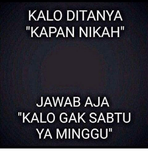 Yang Penting Heppiii. Siapa diantara kalian yang udah sering banget ditanya “kapan nikah” pas lebaran? Ngacung! Pasti banyak kan? Tenang guys, kamu nggak perlu khawatir apalagi pura-pura mati. Nih, beberapa jawaban yang bisa kamu siapin kalo ditanya lagi.