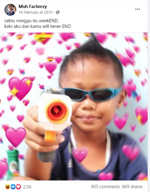 Gabungan foto dan caption ini bikin banyak netizen terhibur. Status-status unik dan lucu Muh Fachrezy pun viral. Yuk tengok seperti apa status-statusnya.