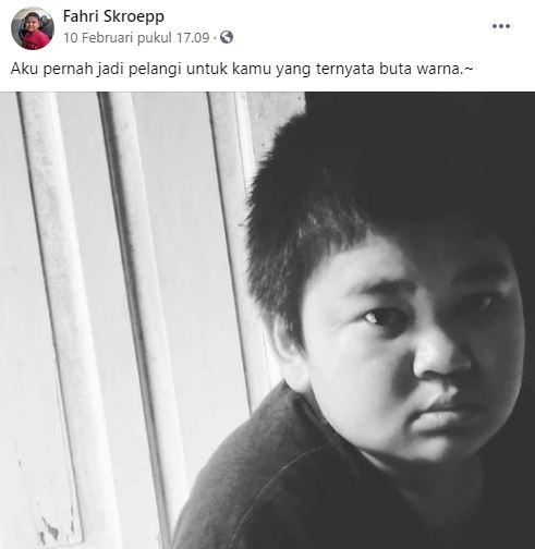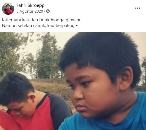Ada yang kenal dengan fahri Skroepp?? Ya bocah yang sempat viral karena statusnya galaunya di social media ini membuat kita bikin cengar – cengir saat melihatnya, karena Tidak hanya statusnya yang galau fahri juga kerap menambahkan foto-foto dirinya yang menggemaskan.