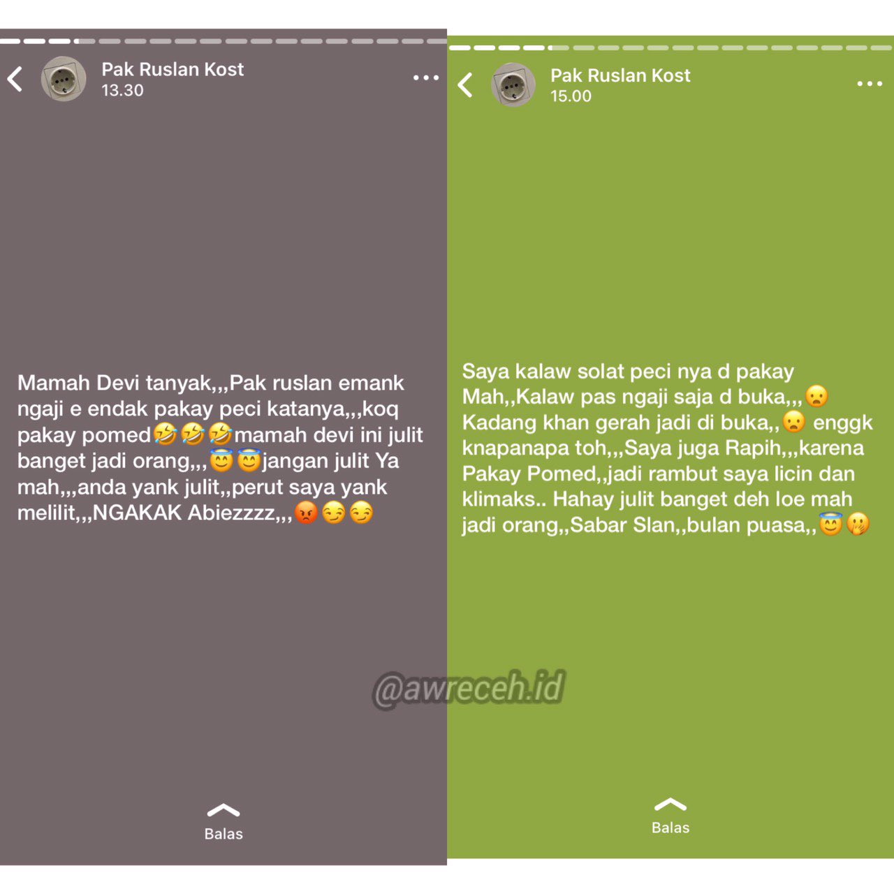 Hal ini rupanya dilakukan oleh salah satu pengguna WhatsApp bernama Ruslan. Melalui status akun WhatsApp-nya, ia mencoba melakukan review terhadap para tetangganya di hari pertama berpuasa.
