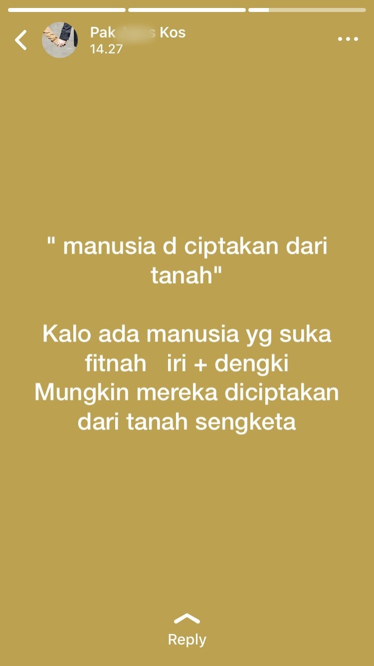Di era perkembangan jaman yang semakin maju, cara orang meluapkan curhatan hati bisa berbagai cara, salah satunya lewat social media atau status chat. Seperti curhatan ibu kos dibawah ini yang curhat lewat status whatsapp.