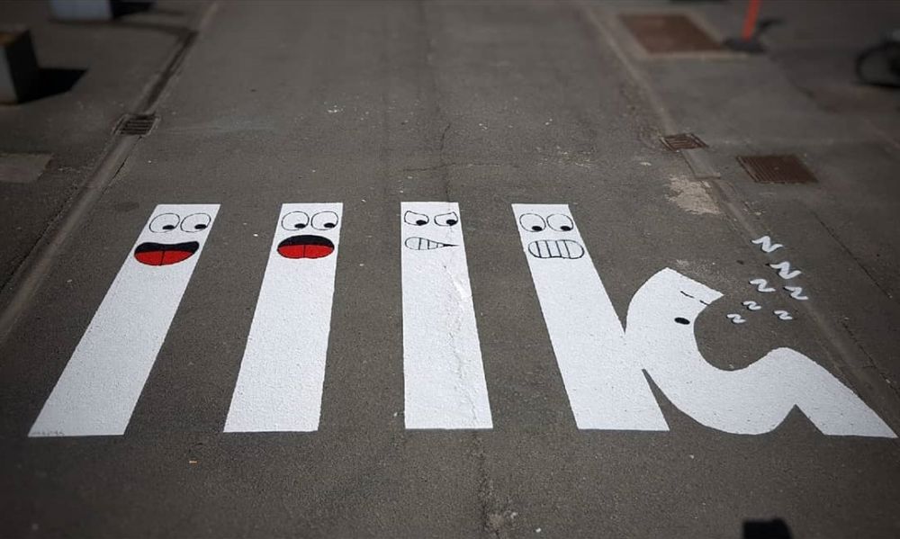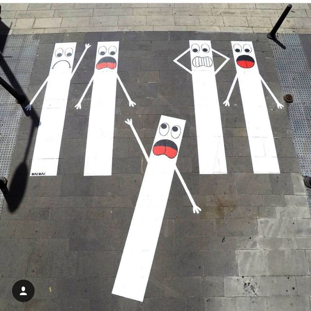 Yang Penting Heppiii. Lebih dari coret-coret di dinding, karya seni yang ini dijamin bisa bikin kamu takjub bahkan gemas. Padahal Cuma zebra cross, tapi kayaknya sayang untuk diinjak sebab tampilannya seperti karakter hidup dengan berbagai ekspresi. Penasaran? Ini dia gambarnya.