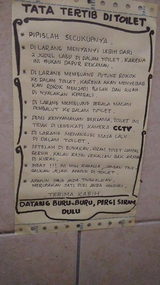 Tata tertib pengguna toilet yang bikin adem panas. (