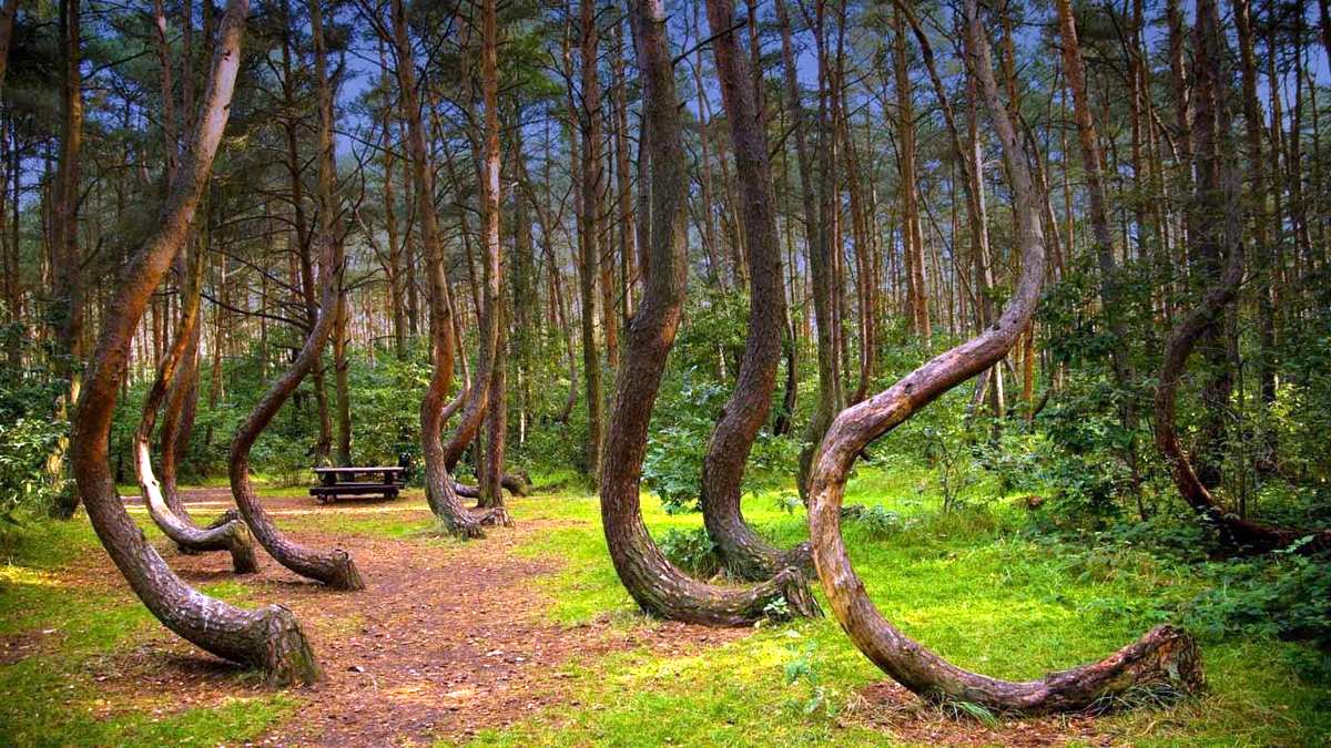 Entah mengapa, pohon-pohon di hutan ini semuanya punya bentuk melengkung yang sama, ke arah yang sama pula. Tapi justru itu yang menjadikannya unik dan misterius.