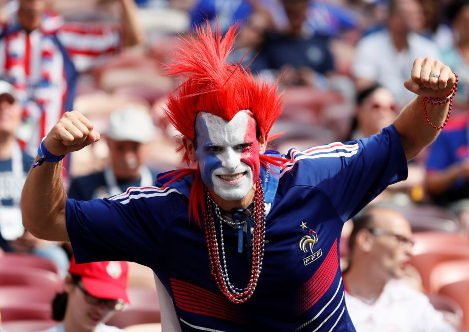 Abang-abang dari Perancis sampe cet muka dan pake wig buiar bisa total teriak-teriak dukungnya
