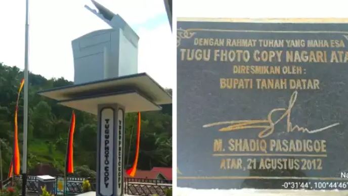 Tugu fotokopi di Tanah Datar, Sumatera Barat. Saking senengnya warga sana fotokopi ato gimana ya?