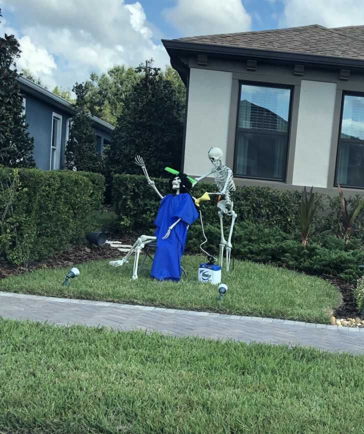 Yang Penting Heppiii. Ketika Halloween tiba, sudah menjadi tradisi bagi masyarakat di luar negeri untuk berlomba-lomba mendekorasi halaman depan rumah mereka dengan berbagai hal yang berbau seram. Tapi alih-alih membuat desain seram, beberapa orang di bawah ini malah memadukan kreativitasnya dengan selera humor yang unik. Hasilnya, tentu menarik seperti yang terlihat berikut.