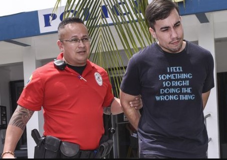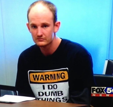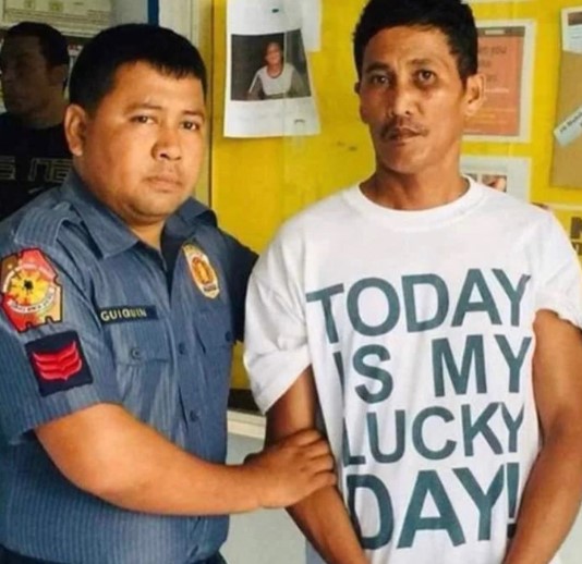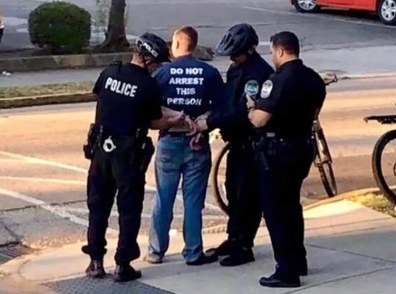 - Mau ada tulisan larangan di kaus juga gak menghentikan polisi buat menangkap pria ini