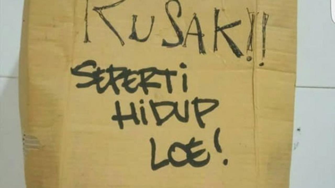 pasalnya Kata-kata yang ada di pemberitahuan rusak ini bikin garuk-garuk kepala. Saking uniknya, pemberitahuan barang rusak yang ditulis di kertas ini diabadikan dan disebarluaskan ke media sosial. sehingga Banyak warganet senyum tipis membacanya, penasaran seperti apa? Yuk simak aja dibawah ini..