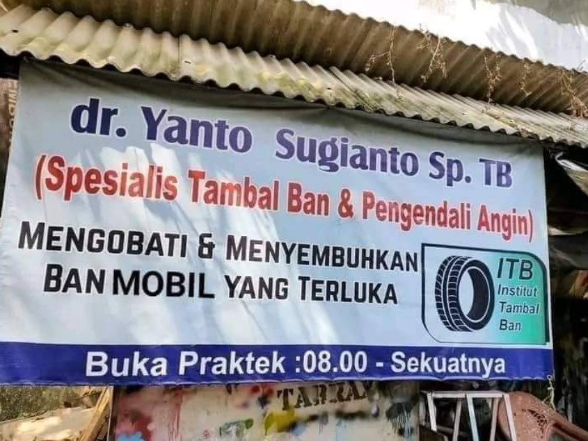 Menariknya, sebagian spanduk tukang tambal ban ini rupanya memiliki tulisan yang antimainstream. Mereka tak sekedar membubuhkan tulisan tambal ban, namun juga memberi tagline yang kocak tapi kreatif. penasaran kan seperti apa? Yuk cek aja langsung..