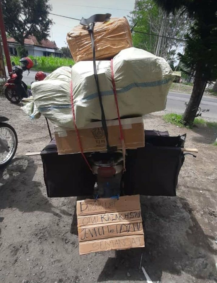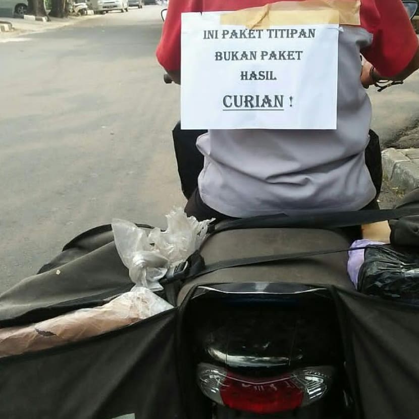 Melihat tulisan-tulisan lucu nan nyeleneh yang terdapat di belakang truk tentu mungkin sudah menjadi hal yang biasa. Akan tetapi, pernah gak sih terbayang jika ada tulisan-tulisan nyeleneh dan lucu tersebut di kendaraan kurir motor dalam mengirim barang??