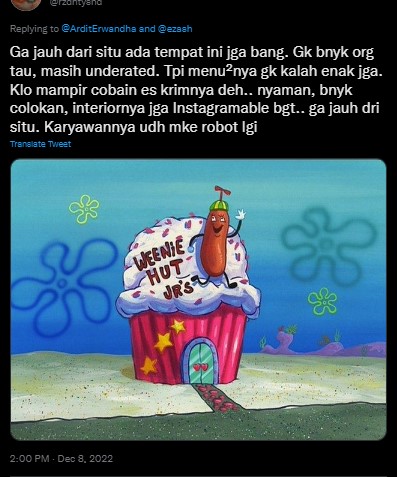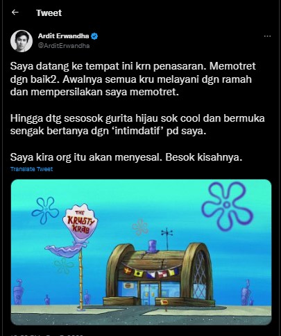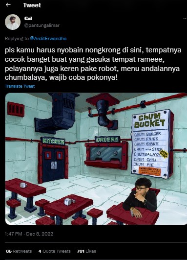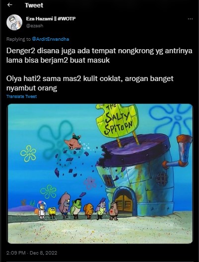 - Adhit Erwandha ngetweet pengalaman seolah-olah datang ke Crusty Crab