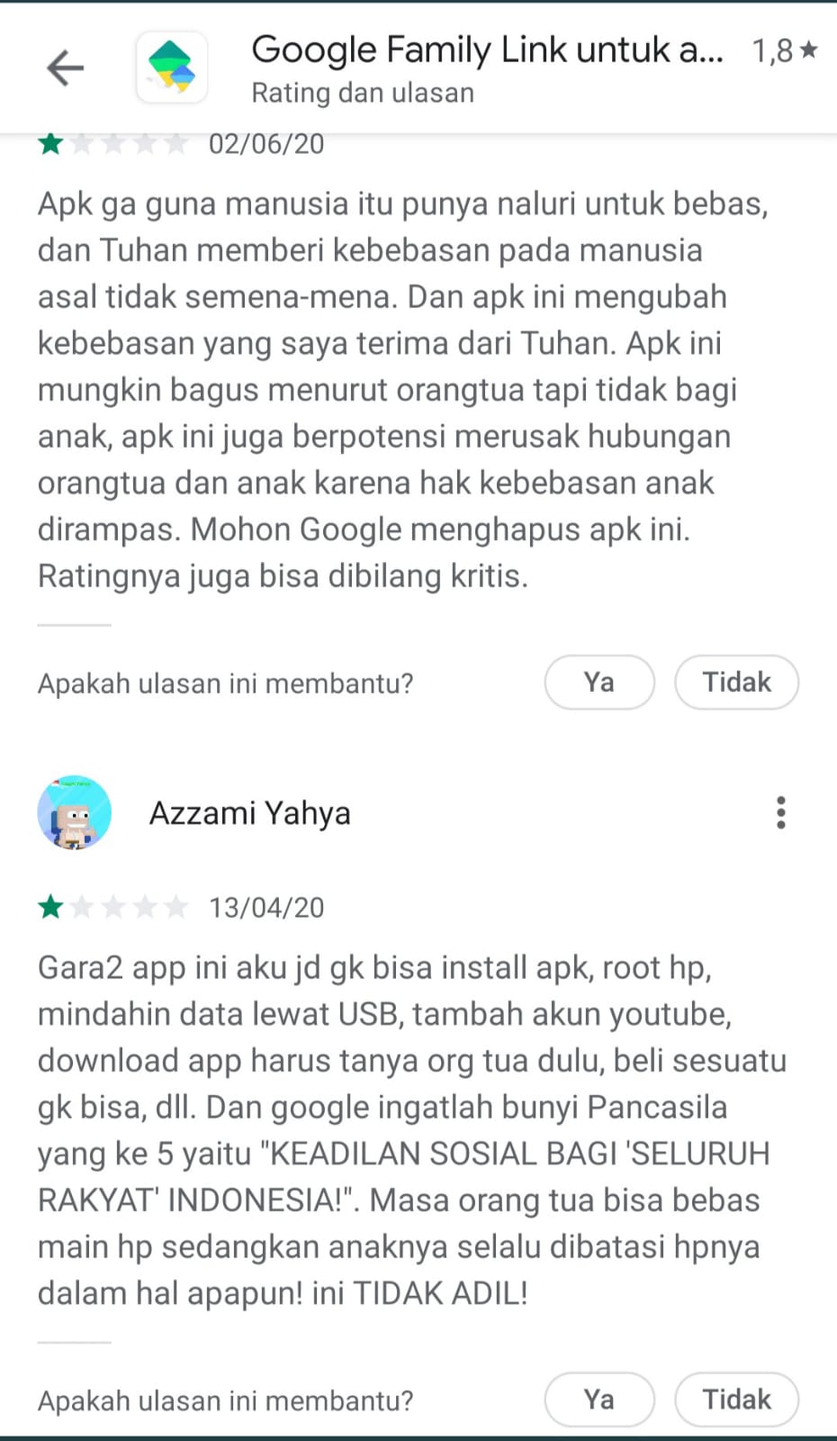 - Curahan hati seseorang di review playstore nih, ada-ada saja.