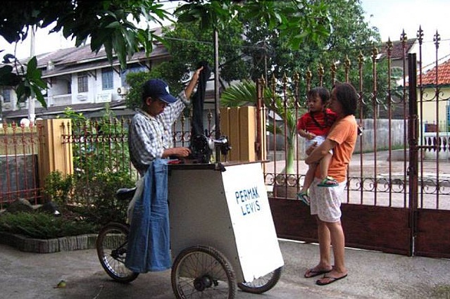 Tukang permak jeans. Ada tukang kelilingnya juga loh.