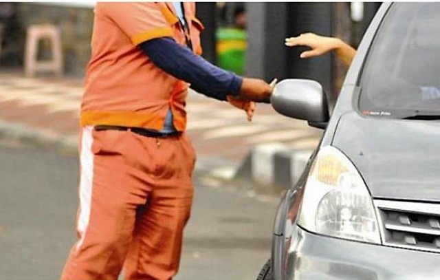 Tukang parkir. Yang suka tiba-tiba muncul pas kita mau pergi.