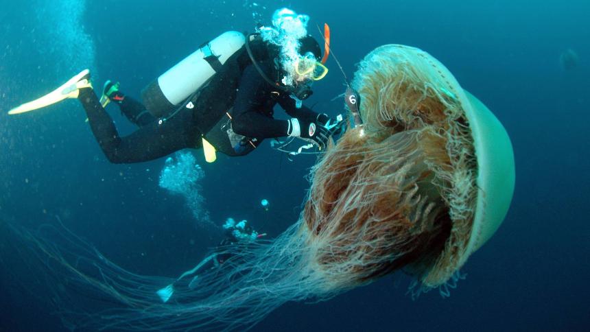 Ubur-ubur ini bernama Cyanea capillata atau dengan sebutan lain ubur-ubur singa, saat dewasa bisa mencapai ukuran 2 meter, padahal waktu dia masih bayi hanya berukuran 1,3 sentimeter. Bahkan peranah ada yang mencapai 15 meter. Keliatannya sih lucu dan unik tentakelnya, tapi berani gak untuk menyentuh ? Dijamin deh pasti langsung kesakitan.
