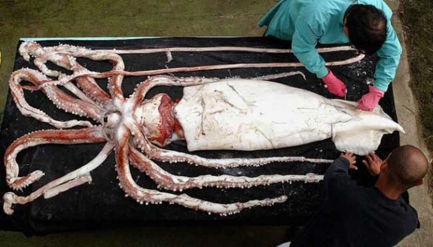 Cumi ini memiliki panjang hampir 2 meter. Tentakelnya yang juga panjang-panjang membuat panjang total cumi-cumi ini jadi sekitar 18 meter. Hmm ini kalau dipanggang pasti bisa untuk seRT (YPH/MM)
