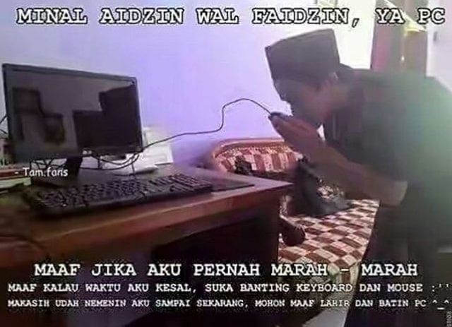Beraneka ragam tradisi melekat dengan Hari Raya Idul Fitri, Halal bi halal adalah salah satunya. Setiap orang akan berkunjung ke rumah satu sama lain untuk bermaaf-maafan. Namun ada pula yang menyampaikan permintaan maaf melalui pesan singkat maupun media sosial. Permintaan maaf tersebut tak melulu hadir dalam bentuk tulisan. Pada konteks ini, gak sedikit permintaan maaf dalam format meme yang bikin hari raya makin Bahagia tertawa.